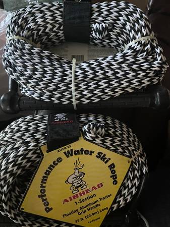 Airhead - Performance Water Ski Ropes 1-Section / Black & White / 75 Foot Floating Aluminum Tractor Grip Handle Brand New - never used $22 each or both for $40