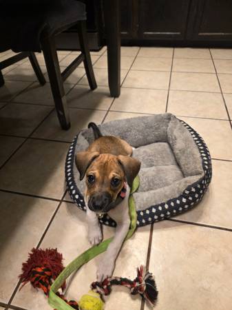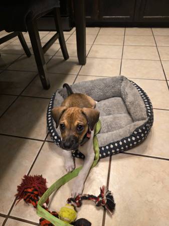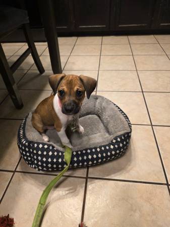 Beagle-Chihuahua Mix Dog. 3 month old female, great with kids Too active for retired couple in their seventy Rehoming fee applies Contact by email