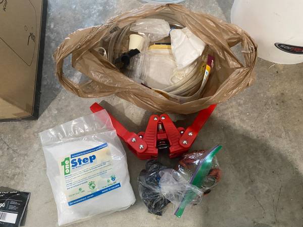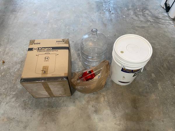 Beer brewing equipment : Kegco 8 gallon brew pot Glass carboy 5 gallon 5 gallon plastic brew bucket Various lines/tubes, bottle capper, brew bags, etc.