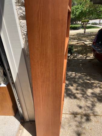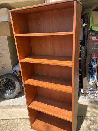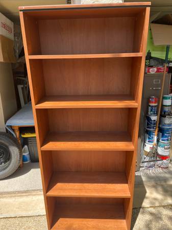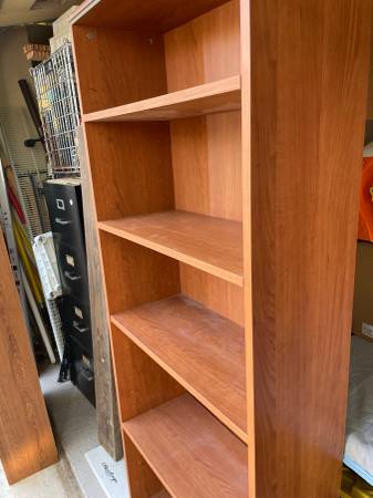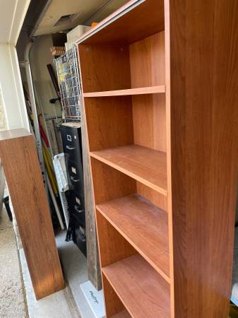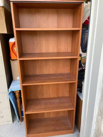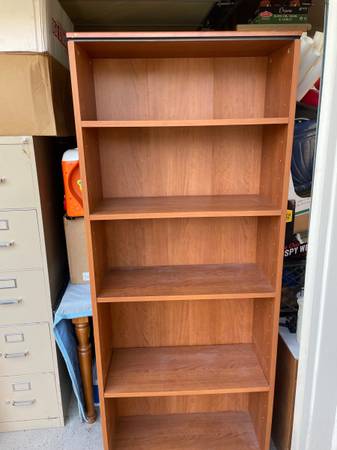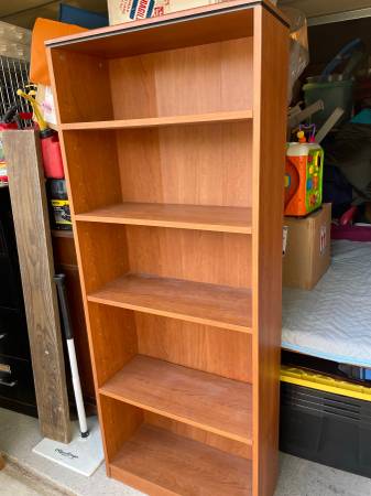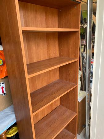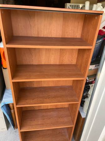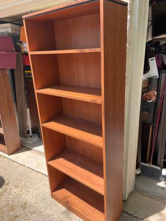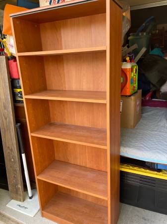 Light Brown Bookcase 4 shelf, 3 shelves are adjustable Have 1 extra shelf but it’s dark brown 72.5 inches tall 29 inches wide 12 inches deep
