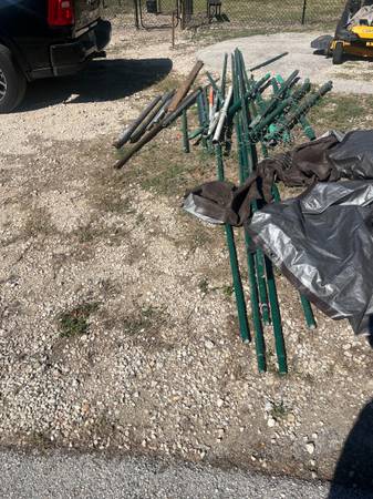 Approximately 150' of green vinyl coated chain link (Home Depot $240 x 3 = $720) Assorted post and rail, tension bands and hardware. Mix and match posts. 2 double size gates. One single gate,...