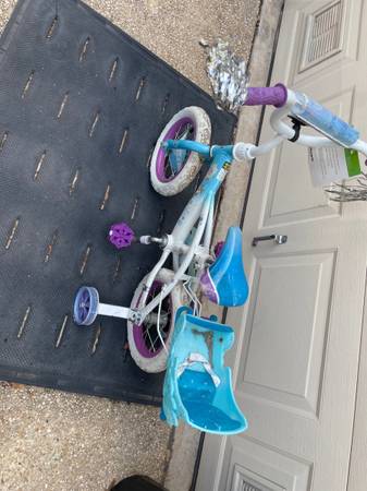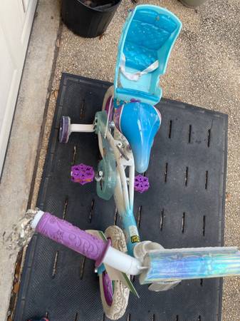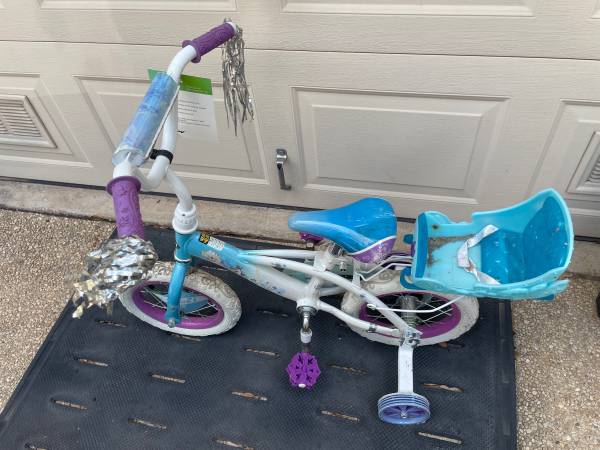 Huffy 12 Inch Bicycle “Elsa” With Training Wheels Aqua Color Doll Carrying platform *All proceeds will be donated to the San Antonio Humane Society and the Wildlife Rescue in Kendalia.