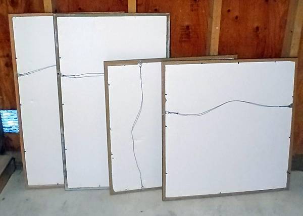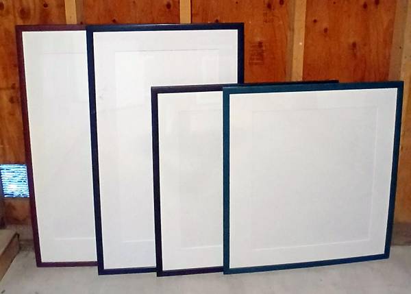 All 4 frames for $60 total. These are beautiful hand dyed frames of dark blue, turquoise, deep purple and a deep pink maroon. A lovely collection with good glass and backing. Size: one 26.5 x 29,...