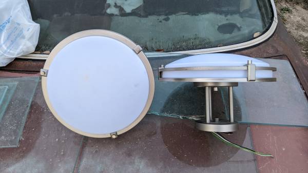 Two light fixtures both for 40. Brushed nickel finish, takes a 4 pin florescent bulb.