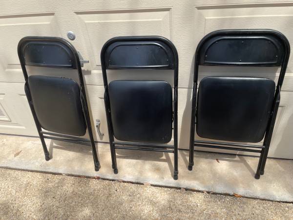 (3) Black Metal Padded Chairs $20 each or all 3 for $50 *All proceeds will be donated to the San Antonio Humane Society and the Wildlife Rescue in Kendalia.