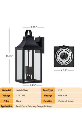 【Size & E12 Bulb Compatibility】The industrial lighting fixture measures 7.25'' in length and 15.25'' in height. The big wall sconce is more economical and can better meet the need for lighting for large spaces. Our exterior wall lamp base is compatible with all E12 bulbs (40W MAX), including LED, CFL, incandescent, dimmable bulbs, etc. The glass shade is pre-assembled and all mounting hardware is included for an easy setup. (PLEASE NOTE: Our patio wall lantern does not include bulbs)