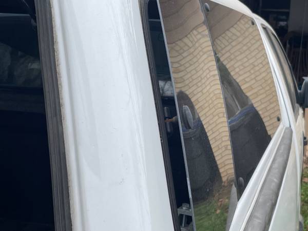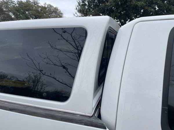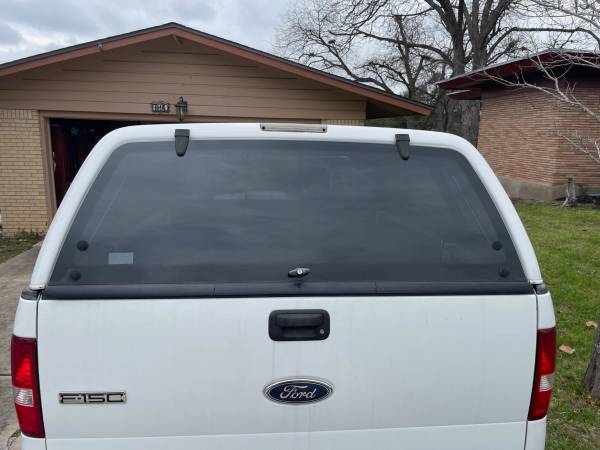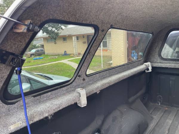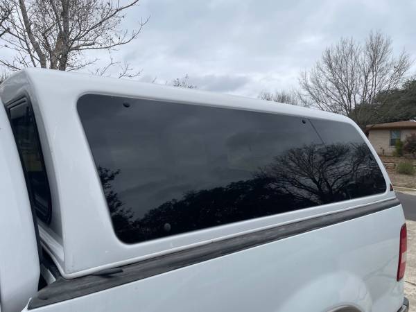 Leer canopy, fits 6 1/2 ft bed. Came off 2005 F-150. Is the right width for that model (2004-2008) but does not fit tight against the cab the way it should. See photos. In good shape, some cracking in the black trim on rear hatch. Sliding front window. Pop out side windows with no screens, believe it came w/o screens. Rear window/hatch locks and has key. Comes with clamps.