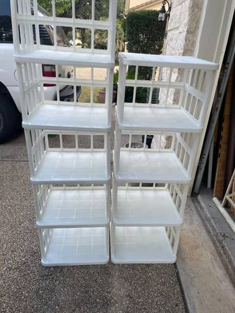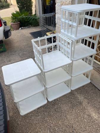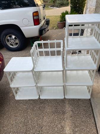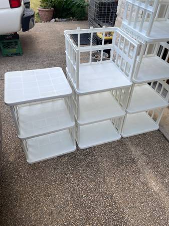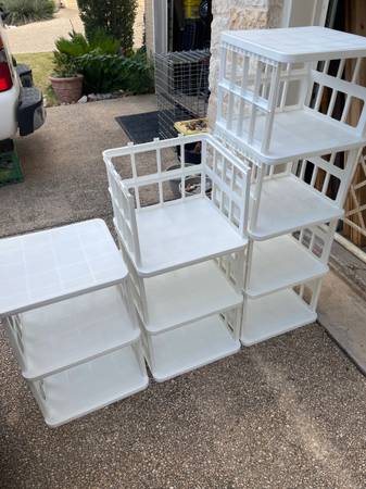 9 Piece Cubicle Stacking Shelving Can be stacked in any configuration 10.5 inches tall inside cube 15 inches deep *All proceeds will be donated to the San Antonio Humane Society and the Wildlife...