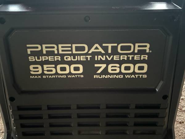 PREDATOR 9500 Watt SUPER QUIET Inverter Generator in Like New Working Condition, starts right on up works really good no issues with it, slightly used , approx 135 hours of usage as shown in pictures,$1300 for it, if interested in purchasing contact me at show contact info