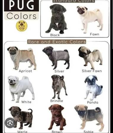 6 week old pug puppies as of 10/31 (pet quality) Pupgles are fullbred and have exotic rare coats. (Silver, Silver Fawn)