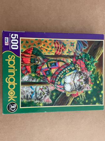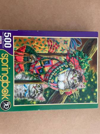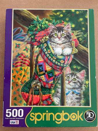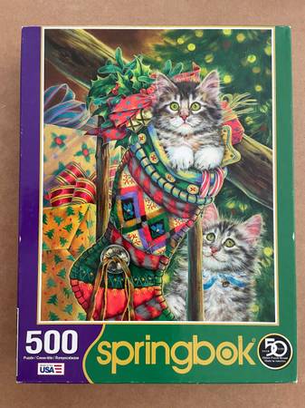 Kitty Christmas Puzzle 500 Interlocking Pieces 100% All Pieces *All proceeds will be donated to the San Antonio Humane Society and the Wildlife Rescue in Kendalia.