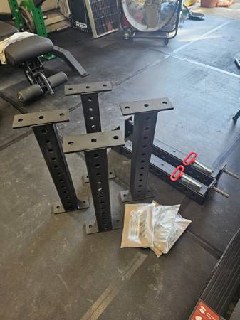 I have a full set (4) of REP Fitness PR-4000 24" crossmembers. I also have a set of REP Fitness PR-4000 Flip-Down Safeties. I would prefer to sell all together for $80 but will negotiate if you only need one or the other. This is a great deal if you're local and looking to build out a power rack. All of this is over $300 new from REP. Color is Matte Black for all. Must pick up in person near Northstar Mall.