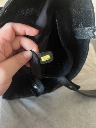 Vintage Chanel Tote - The Chanel Pairs Biarritc with chanel serial number (second Pic) (Black canvas, silver tone hardware, dual shoulder straps, nylon lining and dual interior pockets, zip closure at top, protective feet on base, notable peeling on exterior and some stickiness) $350
