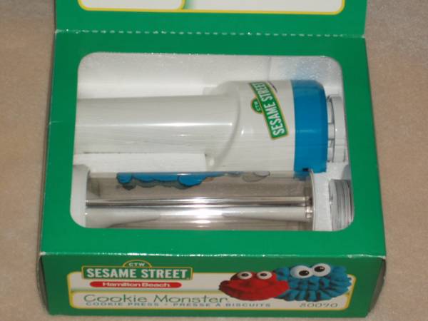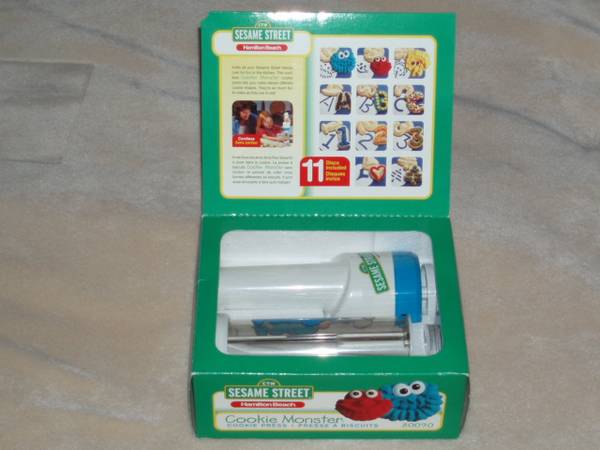 Up for sale is a used Hamilton Beach SESAME STREET Cookie Monster Cookie Press inside original box. This unit requires 4 AA battery to operate. This cookie press set comes with 11 discs: 1, 2, 3, A, B, C, Cookie Monster face, Elmo face, Big Bird face, Christmas Tree, Y. Photos are of the actual item that you will receive. Please view all photos to verify its condition and appearance.