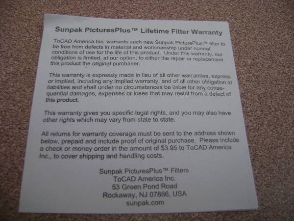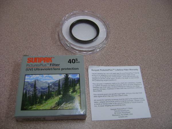Up for sale is a pre-owned Sunpak 40.5 mm UV Ultraviolet Lens Protection Filter Camera. It is in good condition with no scratch on the lens. It comes in the original box with warranty paper and a clear hard casing. Please view photos to verify its condition and appearance.