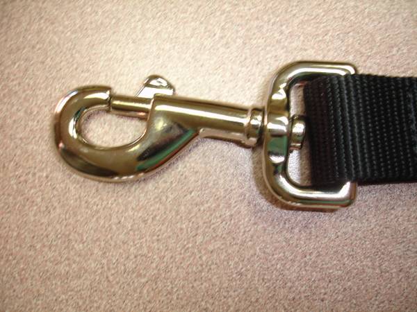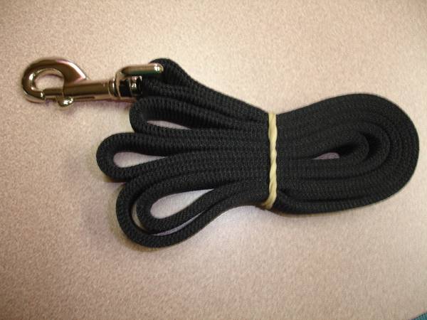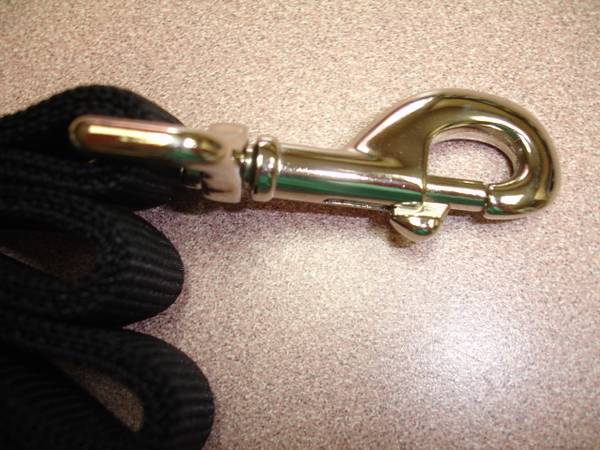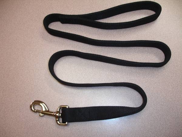 I have a used but in great condition dog leash. Made of sturdy black nylon about 3 ft. long and 1" wide strap. It has a metal bolt snap at one end and the wrist strap is closed loop at the other end.