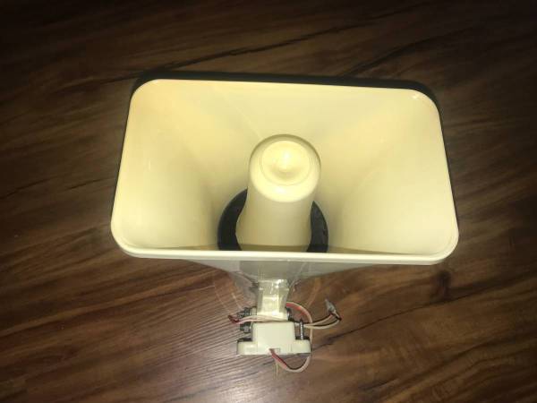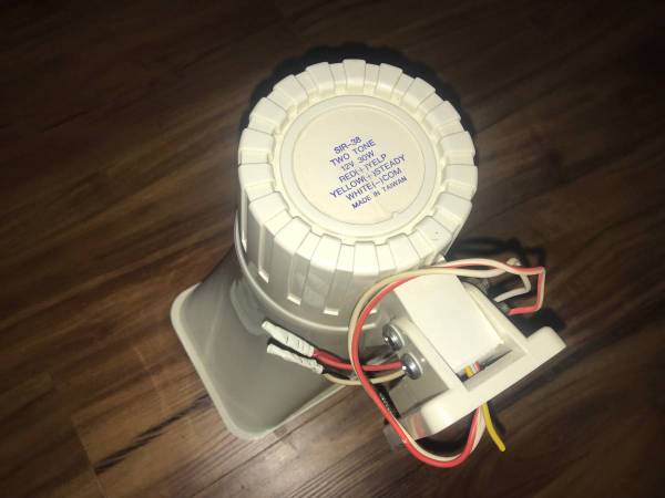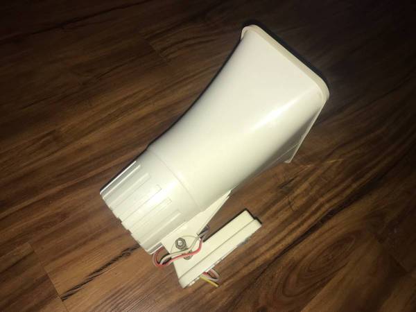 Up for sale is a Used SIR-38 Self Contained, Dual Tone "Yelp or Steady" Electronic Megaphone Security Siren Alarm. It is made by Texas Systems Supply, Inc. It is used for the house alarm system. There are 4 screw holes for mounting. It was removed from a working environment. You are welcome to come by and test out the unit. The speaker opening measures approximately 7.75" W x 4 5/8" H x 9" D.