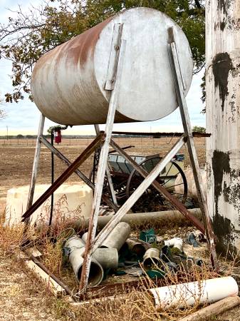 500 gallon overhead fuel tank with stand. $450.00 firm Located in Uvalde, Texas Serious inquires call Eight30-Two75-Three800 (Sorry had to spell out for the spammers)