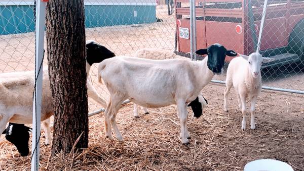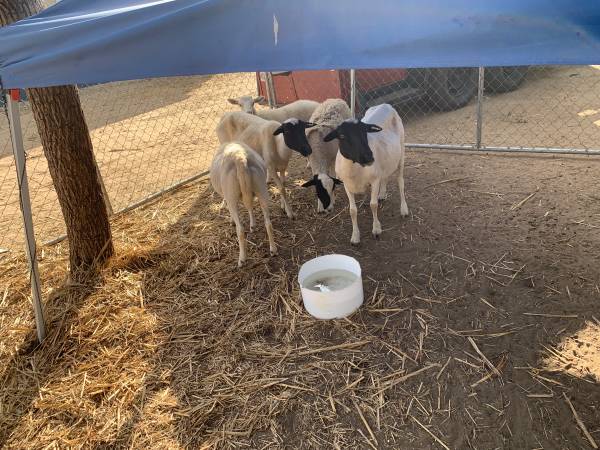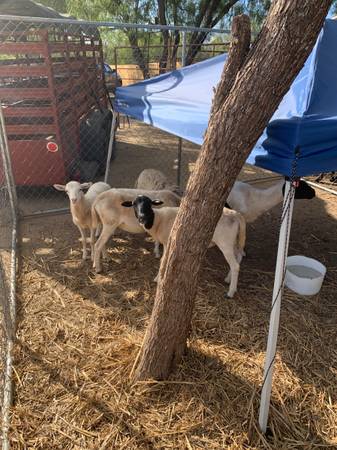 I have 4 female Dorper Sheep and 1 male sheep for $195 each Text or call me if you’re interested Tengo 4 Borregas Dorper y un macho por $195 cada uno Mándame text o llámame si te interesan