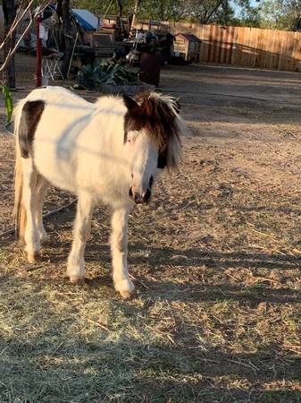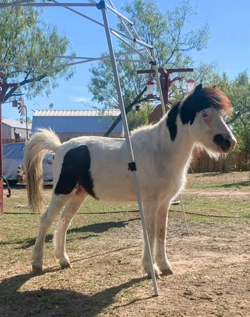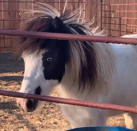 🐴 Hermoso pony macho con ojos azul grisáceo – 11 manos, aproximadamente 3 años de edad. No está domado, bueno para reproducción. Entrenado con cabestro.