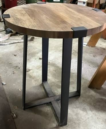 Beautiful 18 inch, Rustic Oak Urban Industrial Wood and Metal Wrap Round Accent Side Table It is 22" tall. Tag on bottom of table identifies it as a Walker Edison built in 2019. Table is like new. I...