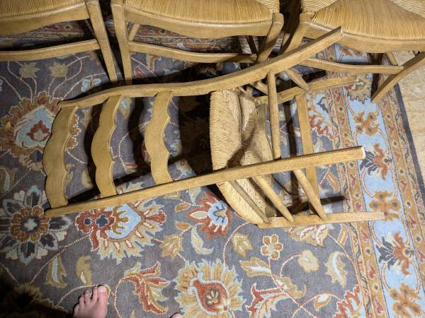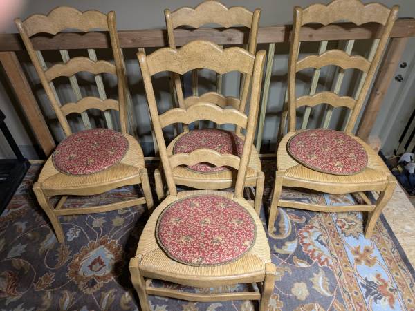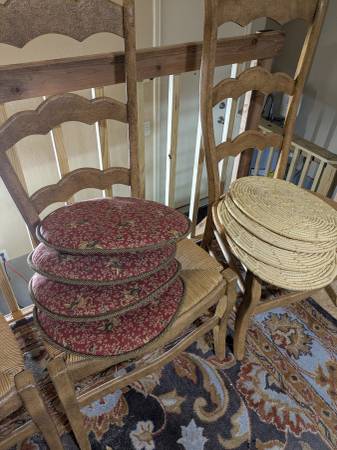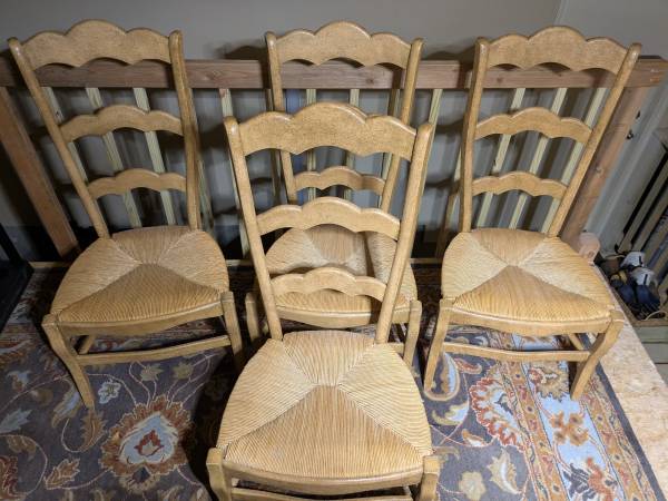 Featuring beautifully woven rush seats and crafted with exceptional quality, these chairs are not just furniture; they're a statement piece for your home. Elevate your dining experience with a touch of rustic elegance! Don't miss out on this fantastic opportunity.