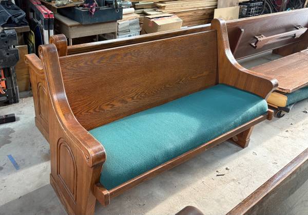 Oak pews 56 inches long each one 200.00 I’m willing to make a deal if you take all 4
