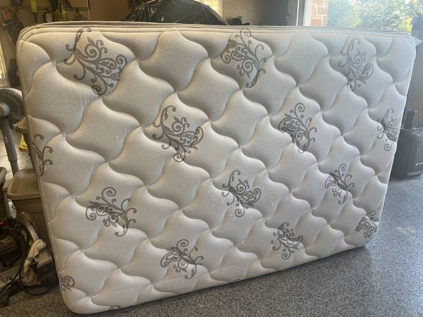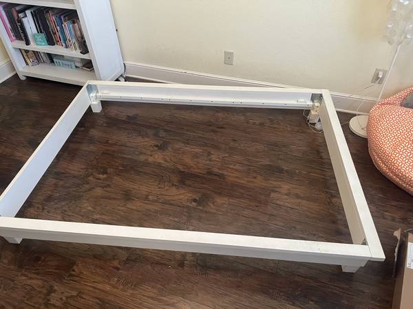 Full size platform bed(cream) and mattress. Both in great shape and all parts for platform bed on hand. You must pick up.