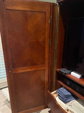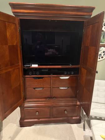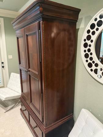 Armoire and dresser with mirror, a few knicks and signs of wear as shown in pictures. Dresser w/mirror - $200 Armoir in very good condition - $125 Getting ready to downsize. Set is in a main floor...