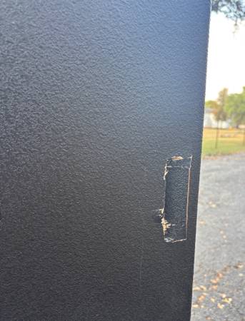 One GP-118SW subwoofer has very minor, purely cosmetic damage (pictured). It is not structural, does not affect performance, and can be easily repaired if desired.