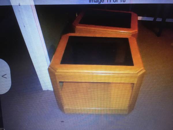 2-VINTAGE 1970S OAK/BEVELLED GLASS TABLE LAMP/SOFA END TABLES 24 1/2" X 271/2" X 22" HIGH TABLES. $50.00 each(was $80 each) show contact info