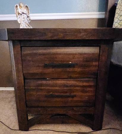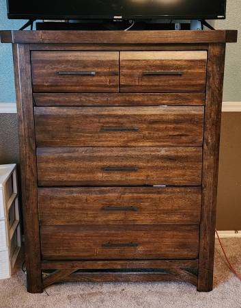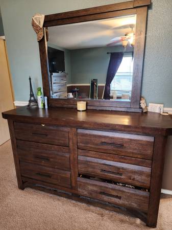 Bear Creek Storage Bedroom set. Comes with king size bed frame, both night stands, chest and big dress with mirror. Paid over 5k for it, asking 3500 obo. Great Christmas present!
