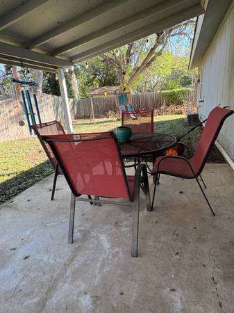 Steal framed mesh chairs with round table. Always on the patio so no sun exposure. Must pick up. ***CASH ONLY***