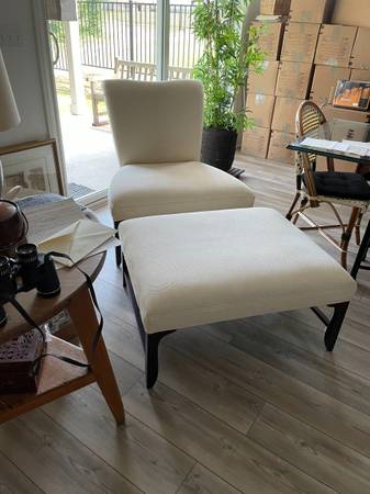 This CLASSIC chair and ottoman was made by BARBARA BARRY for Baker Furniture