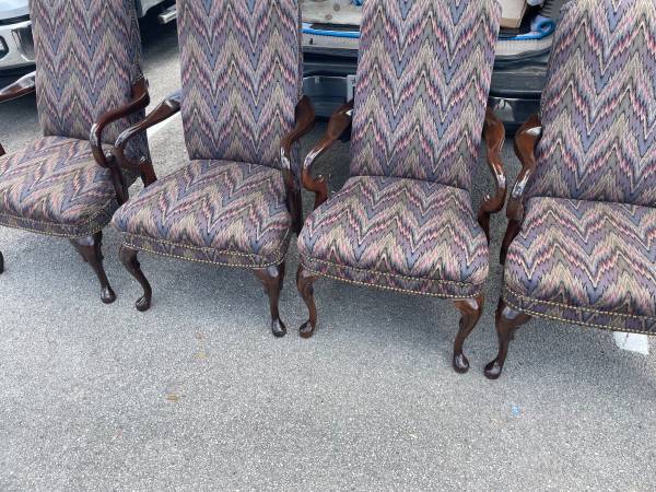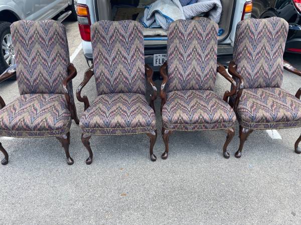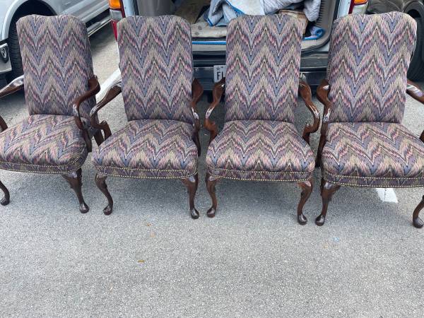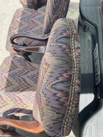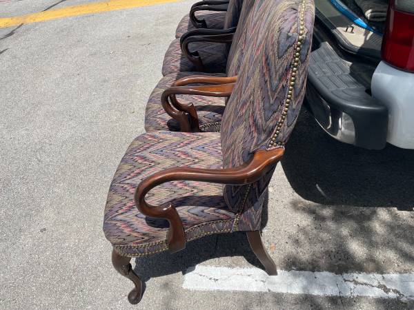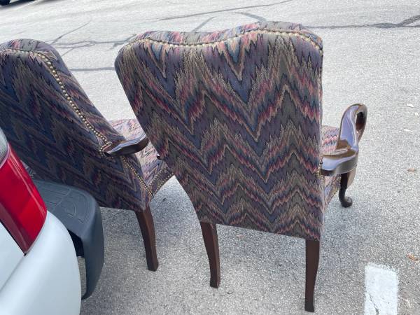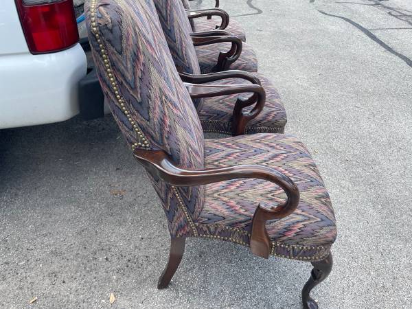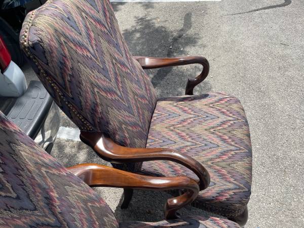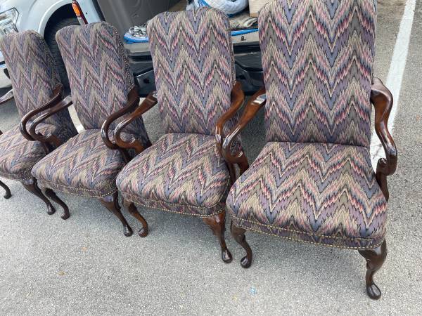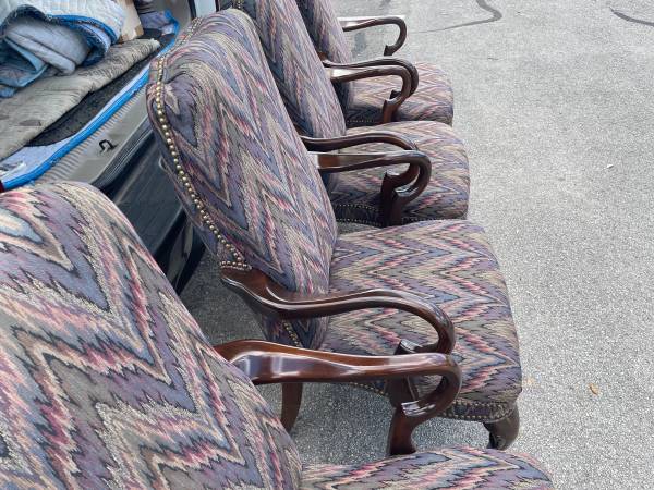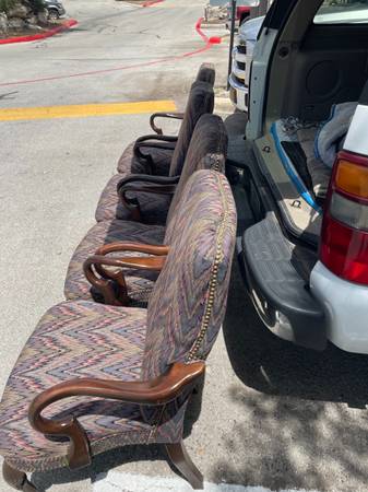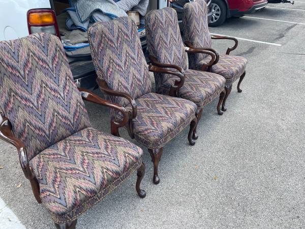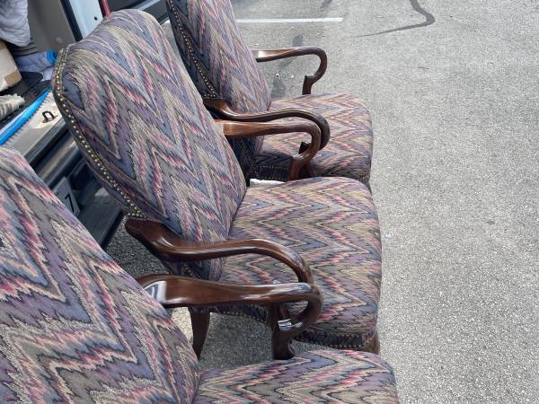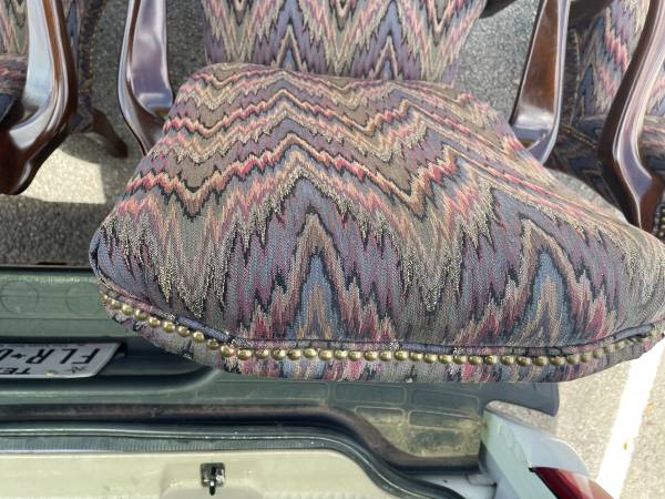(4) Accent Chairs Fabric Trim around edges are bradded $125 each All 4 for $450 *All proceeds will be donated to the San Antonio Humane Society and the Wildlife Rescue in Kendalia.