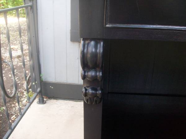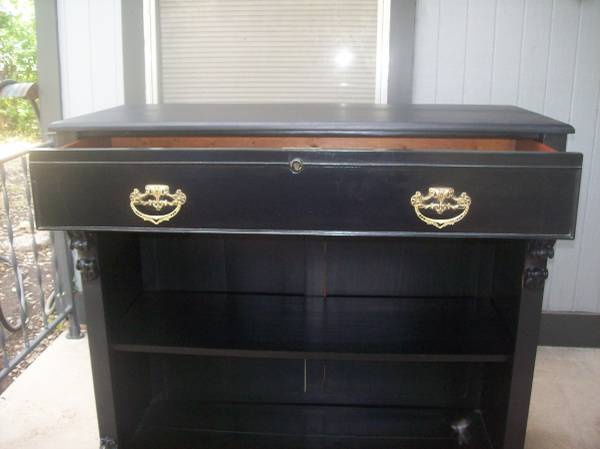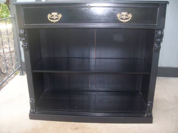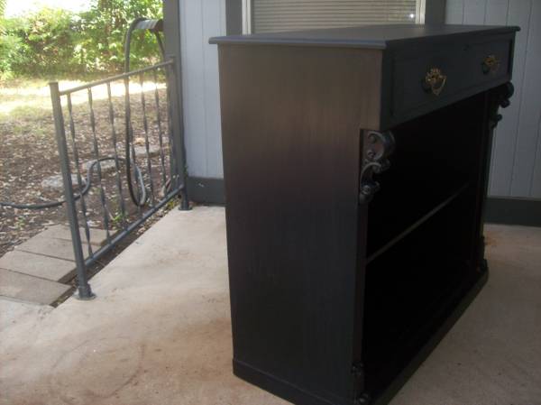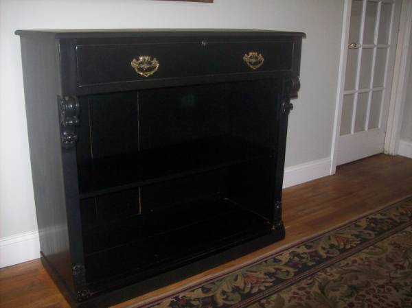 43 In. long X 19 in. deep X 40" High 1 drawer the length of the cabinet 2 shelfs in open cabinet solid wood Great for TV and stereo equipment Great condition.