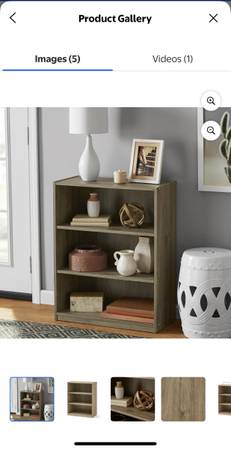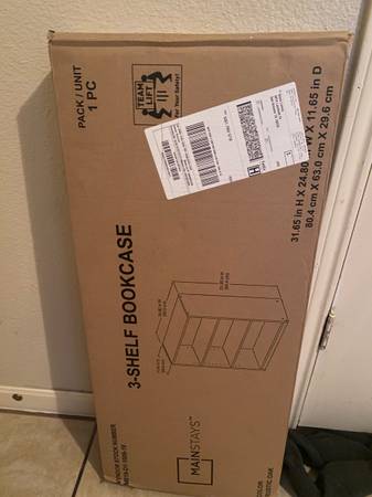 Selling this bookcase with adjustable shelves. Color rustic oak. 31 inches x 24inches. Brand new in box unopened asking $20 call or text