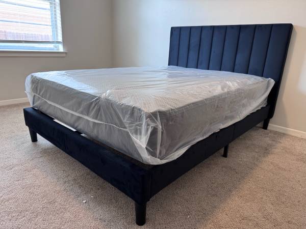 Brand New Full Size Upholstered Platform Bed With Plush Mattress...