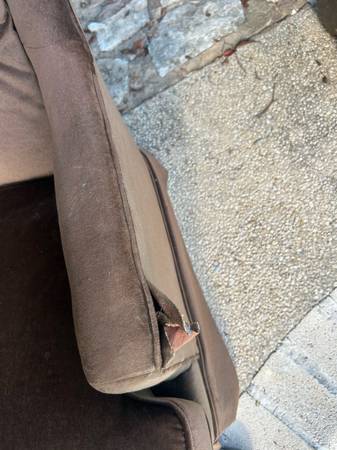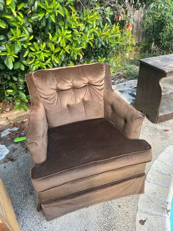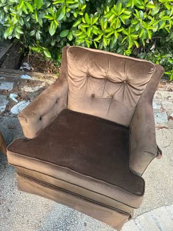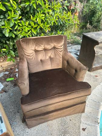 Comfortable brown velvet armchair in good condition. Delivery available for a small fee, depending on location. Located near Bitters and 281