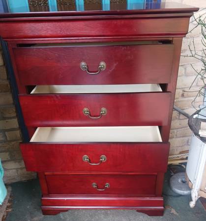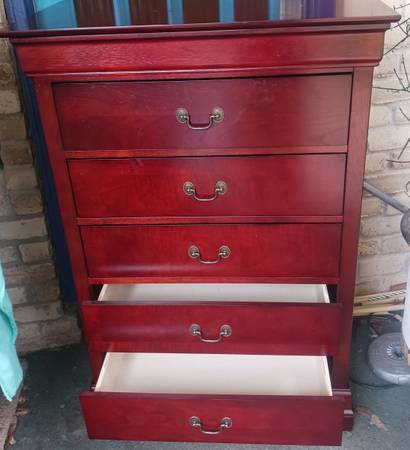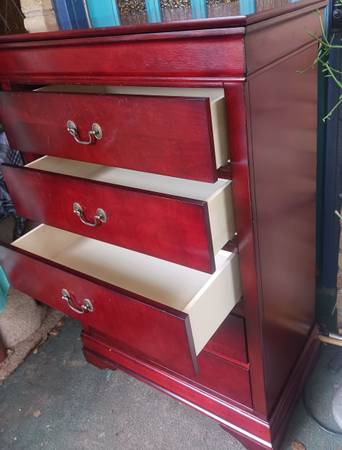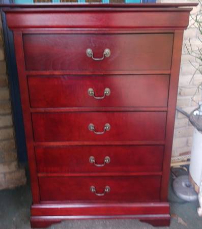$125 OBO 5 (Dovetail) Drawer Cherrywood Dresser Made in Malaysia 2002 With a Jewlery style felt lined pull down top. Beautiful piece, few scratches. Near Tezal and Grissom. Can deliver, price...