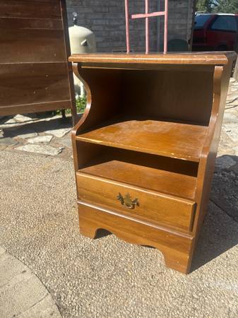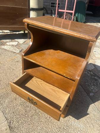 Sturdy wooden nightstand with a drawer and open shelf. Delivery available depending on location. Great accent to any home or apartment. Solid in current condition or awesome project piece. Length 18...