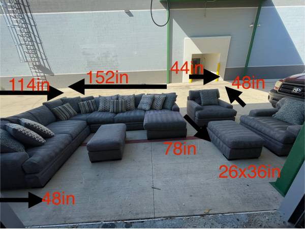 Gray 5pc Cindy Crawford sectional with two chairs+two ottomans $1300