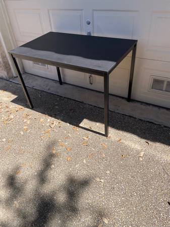 Black Desk /Craft Table 43.5 inches long 26.5 inches deep 29 inches tall *All proceeds will be donated to the San Antonio Humane Society and the Wildlife Rescue in Kendalia.