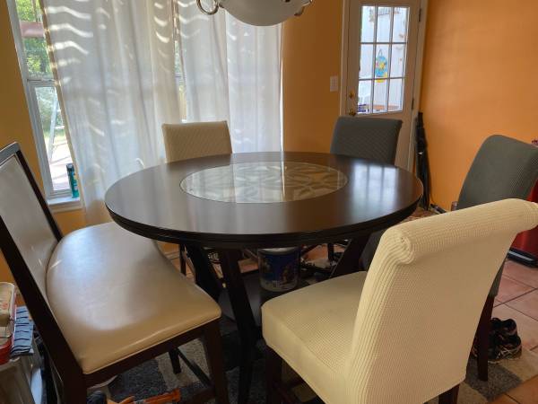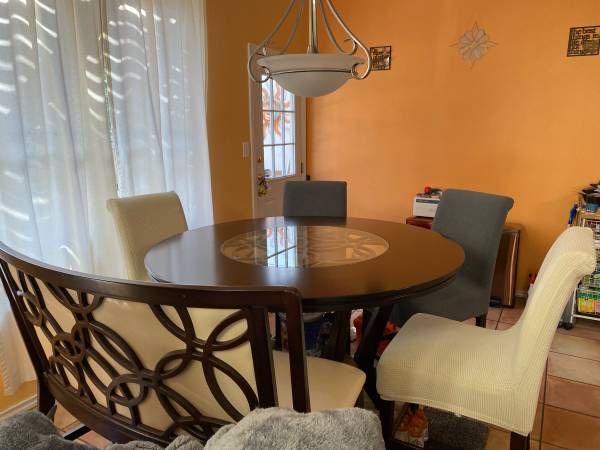 Lovely round dining table w 4 chairs and a bench that seats 2. Will consider any reasonable offer Must pick up / Cash only
