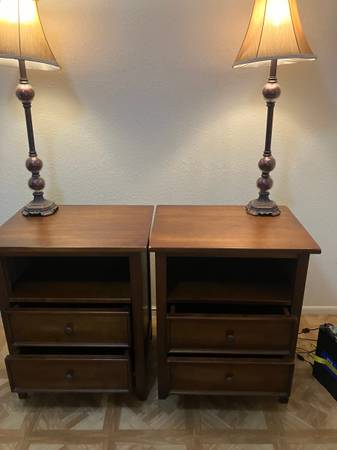 2 - 2 drawer end tables $75 2 - lamps $25 tables: 22" (w) x 17" (d) x 27" (h) lamps: 30" tall local delivery: $50 text: eight30three57nine65four click 'more ads by this user' to see other items for...