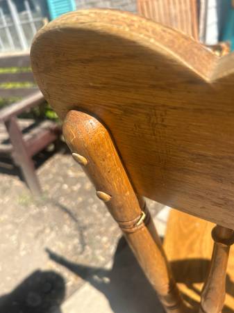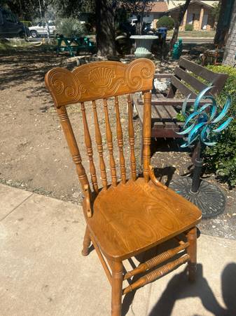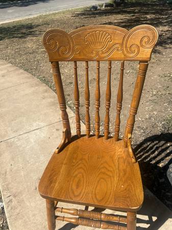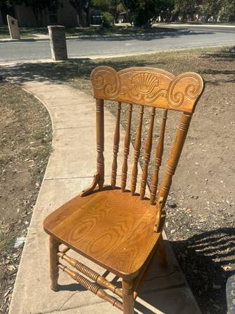 Elegant wooden dining chair with carved backrest. Please be warned one small crack and frame, which is repairable with glue wood glue. Delivery available for a small fee, depending on location....