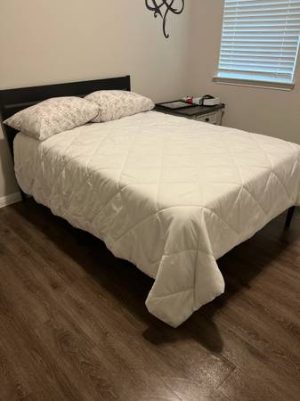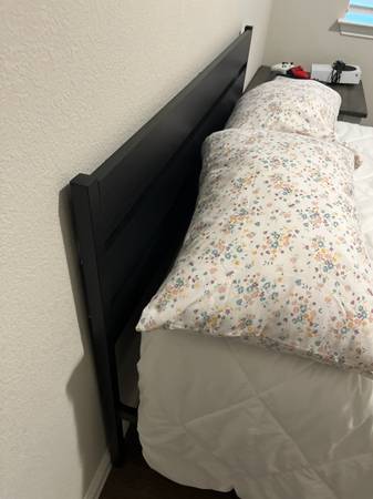 Full mattress super clean six months old memory foam never really used in a guest room no kids no pets no smoke. Soft includes the small nightstand I can deliver for +40.