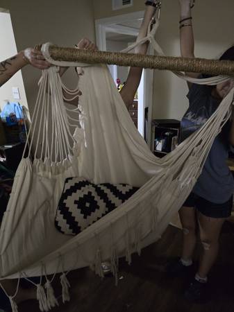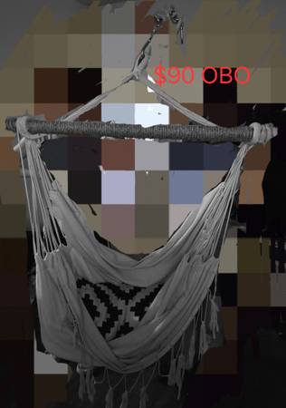 $70 OBO Boho Hammock Swing chair with spreader bar and cushion. Chain included.