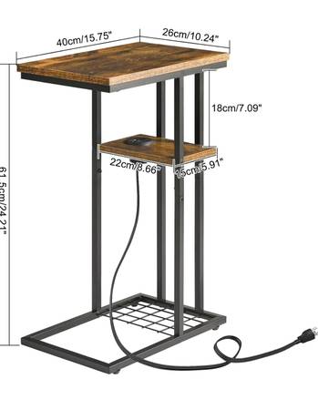 5.75"D x 10.24"W x 24"H A necessity for home, bedroom, living room, den, dinning room, entry way, dorm or office. Phone charger and outlet for laptop.