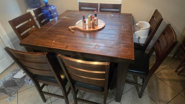 Table: 54 x 54 with a leaf that comes out that's 18 inches. 36 inches tall. Price is firm. Must pick up and load. No assistance will be offered. Fixing to have back surgery. One street off Talley...